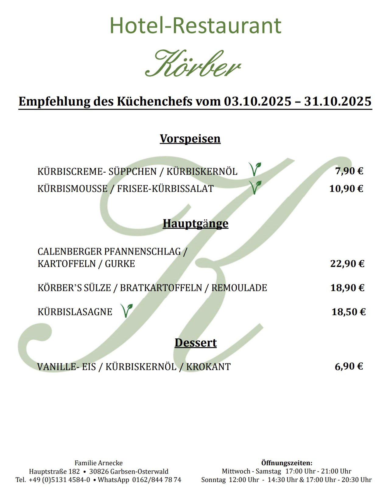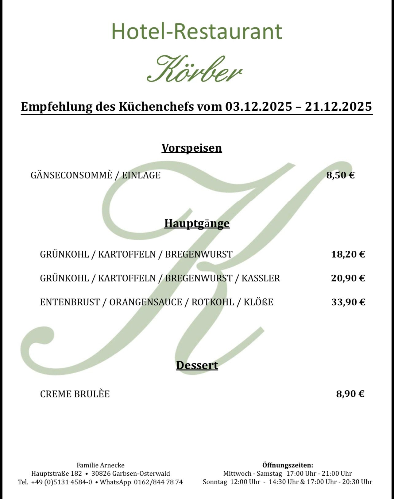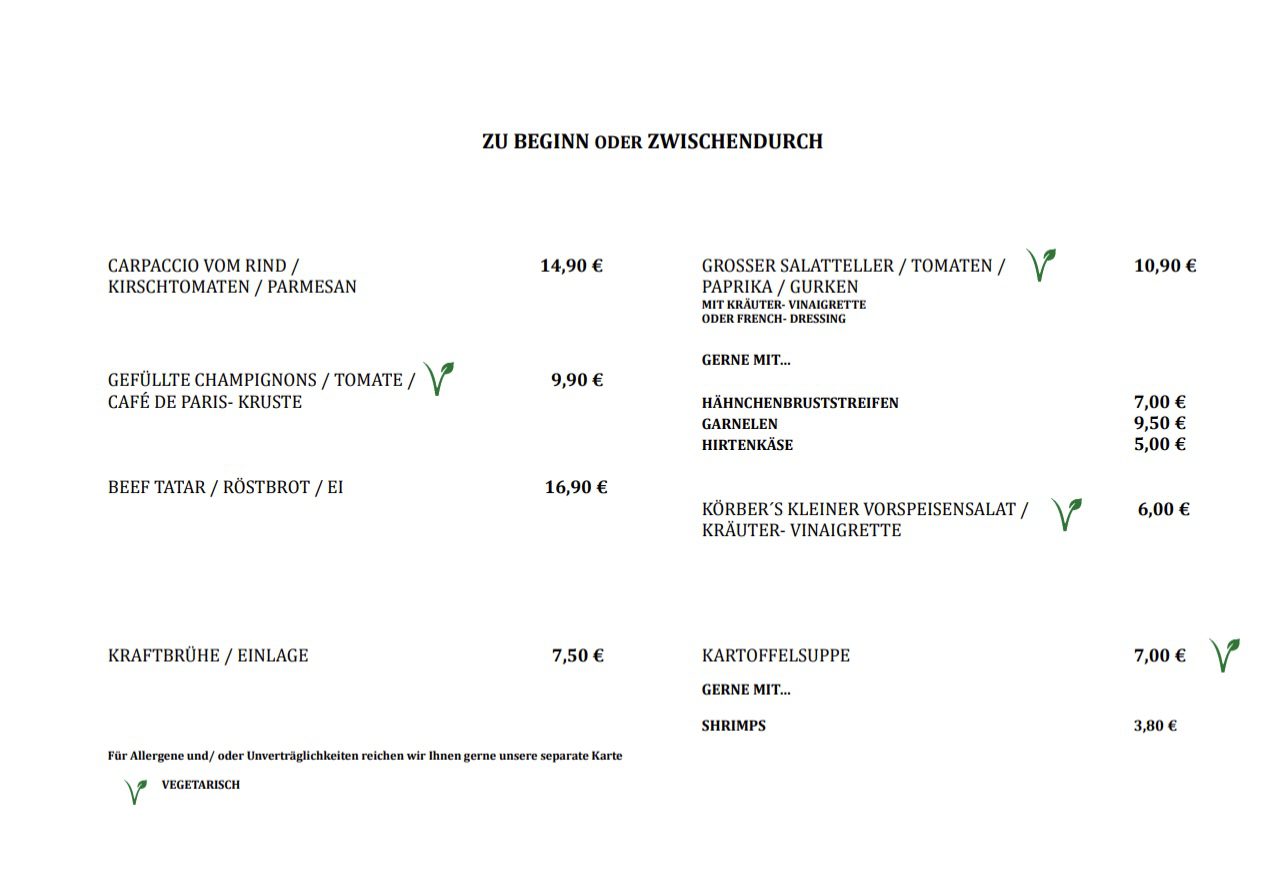 Seien Sie Herzlich Willkommen, in Körber´s Restaurant.