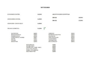 - Bei Personengruppen (ab 10 Personen), reichen wir Ihnen eine verkleinerte Speisekarte
